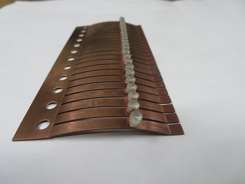 電気接点(自社で熱処理したBe銅に接点をロー付けしています)